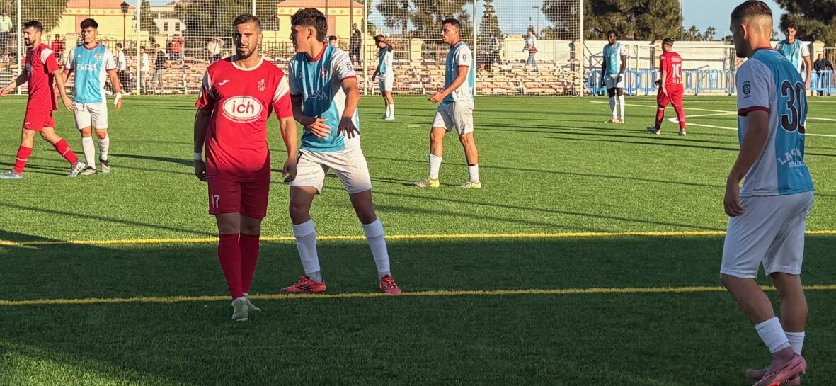 La igualdad fue la nota predominante en el arranque del envite hasta que cumplida la media hora llegó una acción que marcó el devenir del partido. Una pugna por el balón en el vértice del área de El Palmar acabó con un codazo del delantero local Fredi sobre un jugador contrario que el árbitro interpretó como desmedido y que le costó la expulsión con roja directa al pichichi de la categoría.