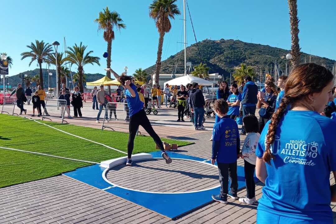 Cartagena juega al 'Atletismo en la Calle' este sábado, 26 de noviembre, con un sinfín de actividades gratuitas para todas las edades en el puerto. La Explanada del Club de Regatas acogió, entre las 11 y las 13 horas, una nueva jornada de este proyecto impulsado por la Federación de Atletismo de la Región de Murcia (FAMU).