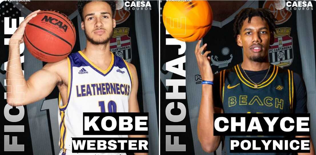 El CB Cartagena ha reforzado su plantilla con la llegada del base estadounidense Kobe Webster y del pívot norteamericano Chayce Polynice. Dos incorporaciones destinadas a dar un impulso inmediato al equipo albinegro, que atraviesa un bache de juego y resultados en Primera FEB y que además venía de perder a Sebastián Thomas y Amari Kelly.
