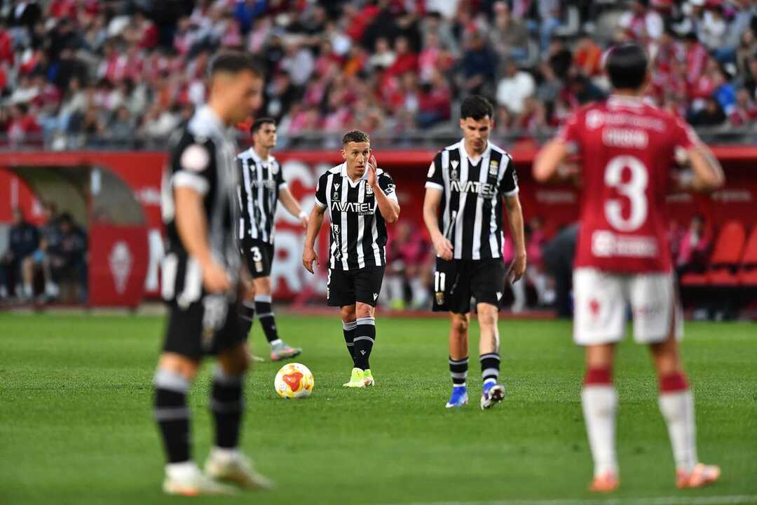 Pasaban los minutos en el Enrique Roca y el equipo de Iñigo Vélez fue poco a poco creciendo en el encuentro, ganando protagonismo y teniendo más participación en facetas ofensivas, intentando lograr el gol de la igualada. En el minuto 34 Kevin Sánchez, con un remate lejano y ajustado, batir a Piñeiro pero el lanzamiento se iba a marchar fuera.