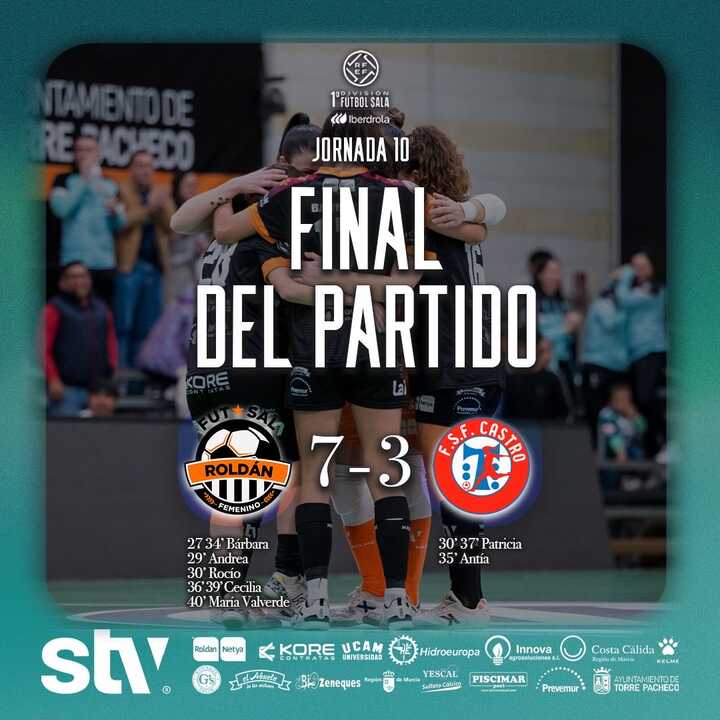El STV Roldán regresó a la competición liguera tras el parón por la disputa del Mundial con una importante victoria en el Gabriel Pérez, imponiéndose por 7-3 al FSF Castro en un partido en el que el equipo fue de menos a más y firmó una gran segunda parte. Un triunfo que permite al conjunto de Roldán situarse en la segunda plaza de la clasificación con 21 puntos.